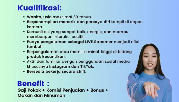 Untuk melamar Loker LIVE Streamer di Garut, Anda harus memenuhi kualifikasi berikut:
