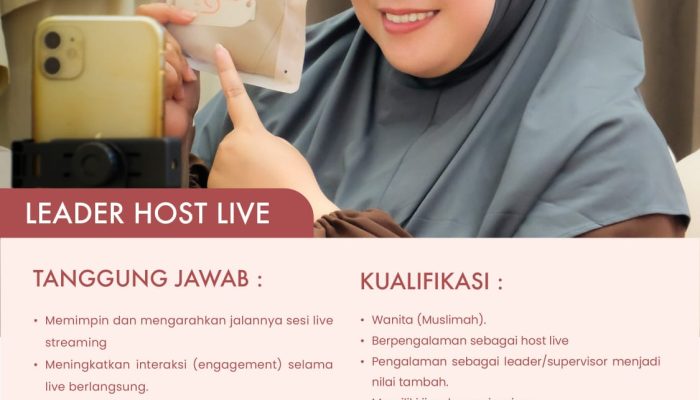 - Kualifikasi Utama: Wanita (Muslimah), berpengalaman sebagai host live, memiliki jiwa kepemimpinan, dan mampu bekerja di bawah tekanan.