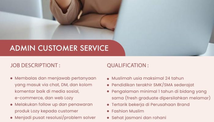 Apakah kamu sedang mencari peluang karier di industri fashion Muslim yang berkembang pesat? Lozy, salah satu brand hijab ternama asal Tasikmalaya, sedang membuka lowongan kerja besar-besaran untuk berbagai posisi strategis.