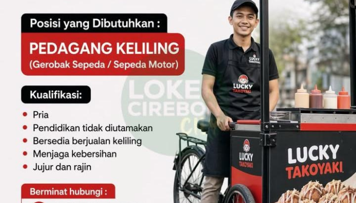 Apakah Anda sedang mencari pekerjaan lapangan dengan penghasilan menjanjikan di wilayah Cirebon? Lucky Takoyaki Cirebon saat ini membuka kesempatan bagi Anda tenaga pria yang aktif dan semangat untuk bergabung sebagai Pedagang Keliling (Gerobak Sepeda / Sepeda Motor). Jika Anda menyukai tantangan bekerja di luar ruangan dan ingin menjadi bagian dari tim kuliner yang sedang berkembang, inilah peluang karir yang tepat!