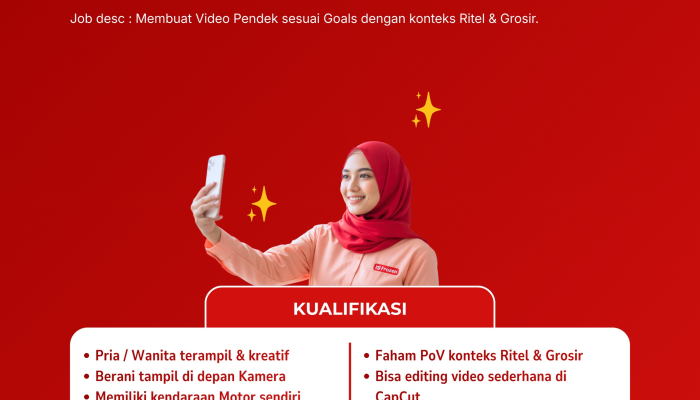 - Kualifikasi: Kreatif, berani tampil di depan kamera, bisa editing video sederhana (CapCut). Terbuka bagi penyandang difabel.