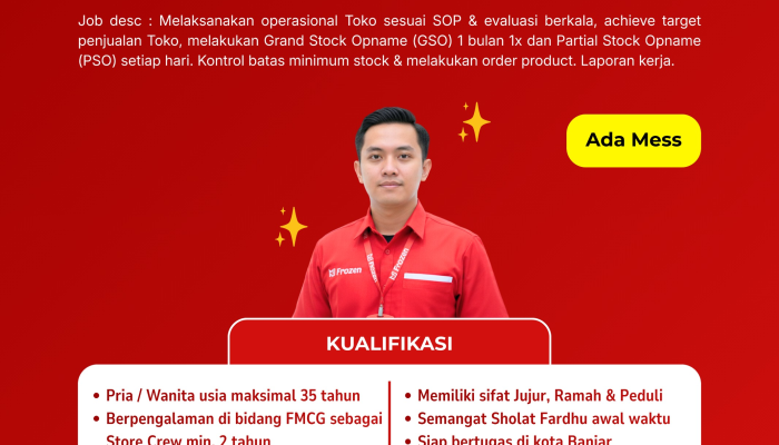 Apakah Anda sedang mencari peluang karir di industri frozen food yang sedang berkembang pesat? Makmur Jaya Frozen, distributor produk makanan beku terkemuka untuk B2B, Ritel, dan Grosir, sedang membuka kesempatan emas bagi talenta berbakat di Kota Banjar dan sekitarnya. Jika Anda adalah individu yang komunikatif, kreatif, dan berorientasi pada target, loker terbaru ini sangat sayang untuk dilewatkan.