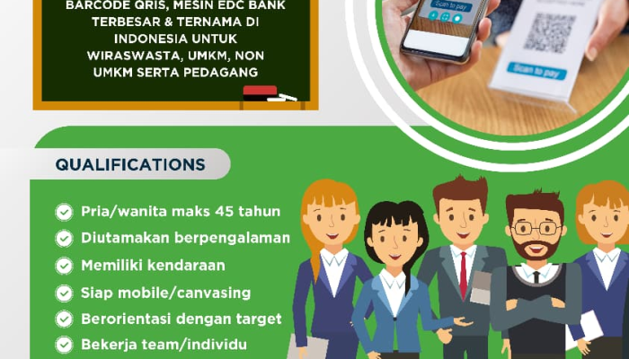 • Membantu pengajuan Barcode QRIS dan Mesin EDC Bank terbesar & ternama di Indonesia.