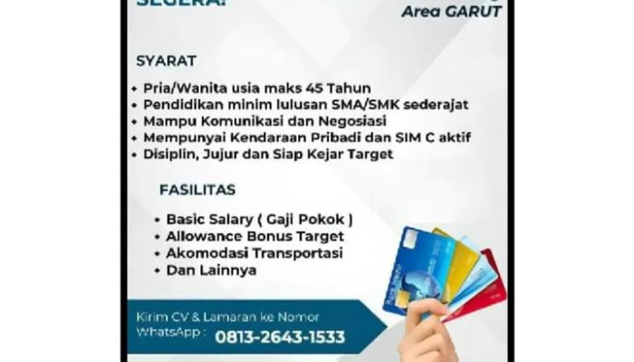 Kabar baik bagi kamu yang sedang mencari lowongan kerja marketing di Garut! Saat ini, Bank BTN (Bank Tabungan Negara) membuka kesempatan karir sebagai Marketing Bank BUMN untuk penempatan Area Garut. Lowongan ini terbuka bagi lulusan SMA/SMK sederajat yang memiliki semangat kerja tinggi, kemampuan komunikasi yang baik, dan siap bekerja dengan sistem target.