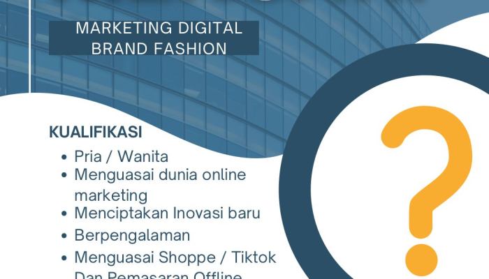 Apakah Anda seorang yang ahli dalam dunia pemasaran digital? Punya segudang ide kreatif untuk memajukan sebuah merek fashion? Jika ya, ini adalah kesempatan emas bagi Anda! Kami sedang mencari individu berbakat untuk bergabung sebagai Marketing Digital Brand Fashion yang akan bertanggung jawab penuh dalam mengembangkan strategi pemasaran online dan offline.