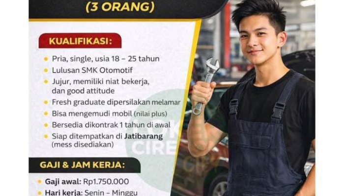 Segera kirimkan lamaran Anda sebelum posisi untuk 3 orang mekanik ini terpenuhi.
