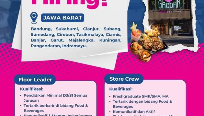 Apakah Anda mencari peluang karir di industri Food & Beverages (F&B) yang sedang viral dan berkembang pesat? Mie Gacoan (PT Pesta Pora Abadi) kembali membuka kesempatan berkarir untuk penempatan di berbagai kota di Jawa Barat!