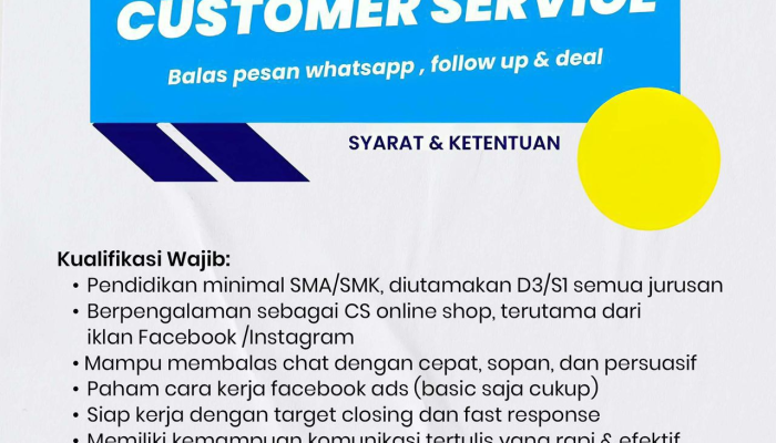 - Berpengalaman sebagai CS online shop, terutama dari iklan Facebook / Instagram.
