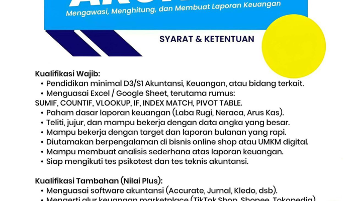 - Pendidikan minimal D3/S1 Akuntansi, Keuangan, atau bidang terkait.