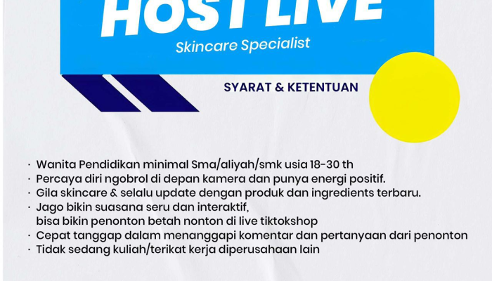 - Tugas Utama: Menjadi host untuk live di TikTok, berinteraksi dengan penonton, dan mempromosikan produk skincare.