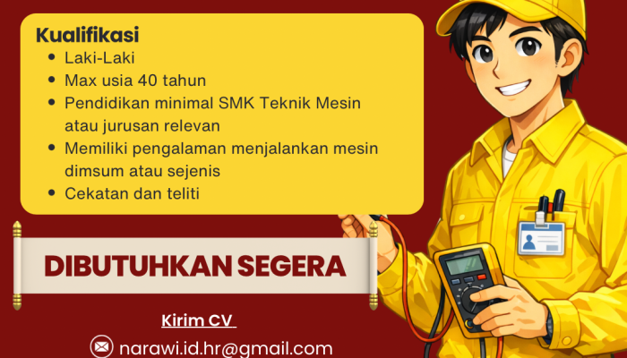 Lowongan Kerja Narawi: Operator Mesin Dimsum (Dibutuhkan Segera!)