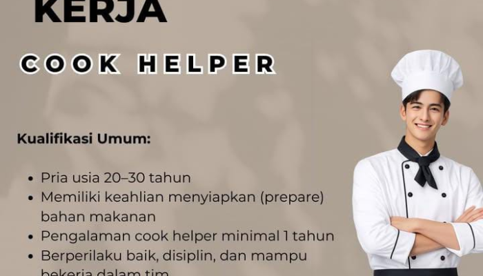 - Pengalaman sebagai cook helper minimal 1 tahun.