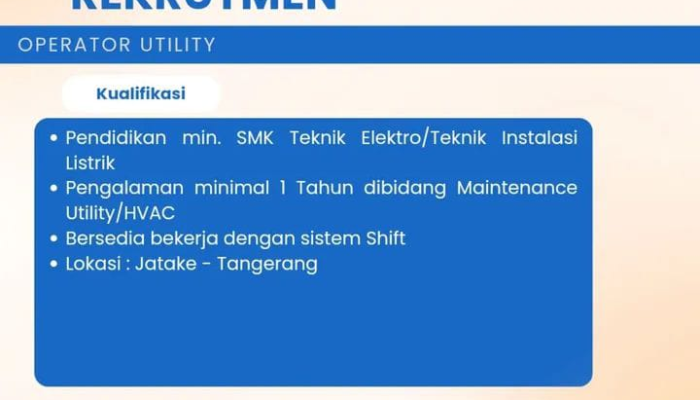 - Memiliki pengalaman minimal 1 tahun di bidang Maintenance Utility/HVAC.