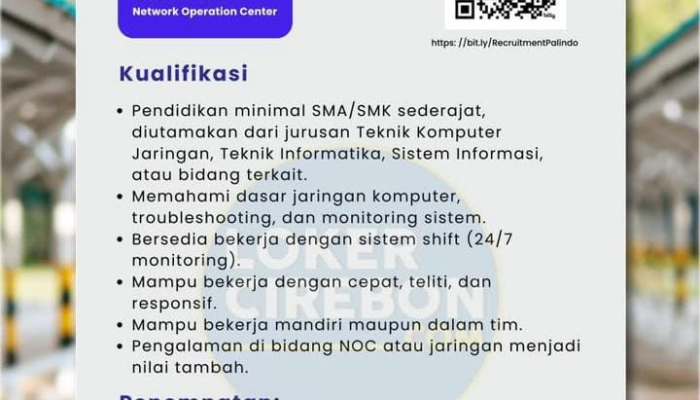 - Syarat Tambahan: Bersedia bekerja dengan sistem shift (monitoring 24/7) serta memahami dasar jaringan komputer dan troubleshooting.