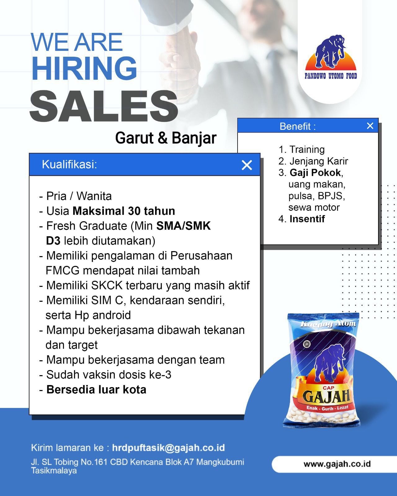 Bagi yang berminat, silakan kirimkan lamaran ke alamat email yang tertera: hrdpuftasik@gajah.co.id.