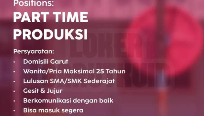 Tanggung jawab utama untuk posisi Part Time Produksi meliputi: