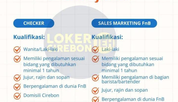 Peluang karir ini sangat cocok bagi Anda yang memiliki passion di bidang pelayanan dan pemasaran kuliner. Jangan lewatkan kesempatan untuk berkembang bersama ekosistem FnB yang kreatif di kota Cirebon.