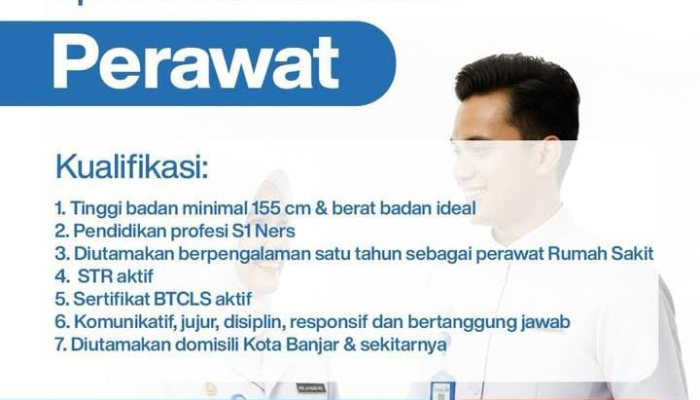 Loker Banjar – Apakah Anda seorang tenaga kesehatan profesional yang berdedikasi dan ingin memberikan pelayanan medis terbaik bagi masyarakat? RSU Banjar Patroman saat ini sedang membuka kesempatan bagi Anda untuk bergabung sebagai Perawat Fulltime.