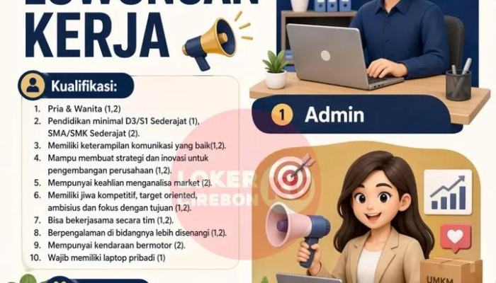 Apakah Anda talenta muda di Cirebon yang memiliki jiwa kompetitif dan ingin berkarir di perusahaan yang dinamis? PT Ari Putra Solusindo, perusahaan yang fokus pada solusi bisnis dan pengembangan UMKM, sedang membuka kesempatan karir bagi Anda! Kami mencari tenaga profesional untuk mengisi posisi Admin dan Marketing UMKM untuk memperkuat tim kami di wilayah Cirebon dan sekitarnya.