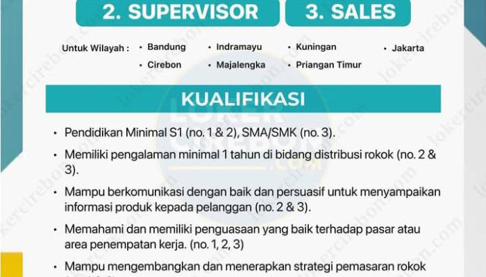 | Sales (No. 3) | SMA/SMK | 1 tahun di bidang distribusi rokok |