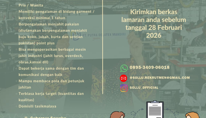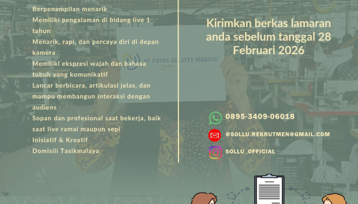 Apakah Anda memiliki bakat di depan kamera atau keahlian dalam bidang garmen? PT Putra Delatex Mandiri, perusahaan industri garmen yang sedang berkembang pesat di Tasikmalaya, sedang membuka kesempatan karir bagi Anda untuk bergabung sebagai Host Live dan Operator Jahit.