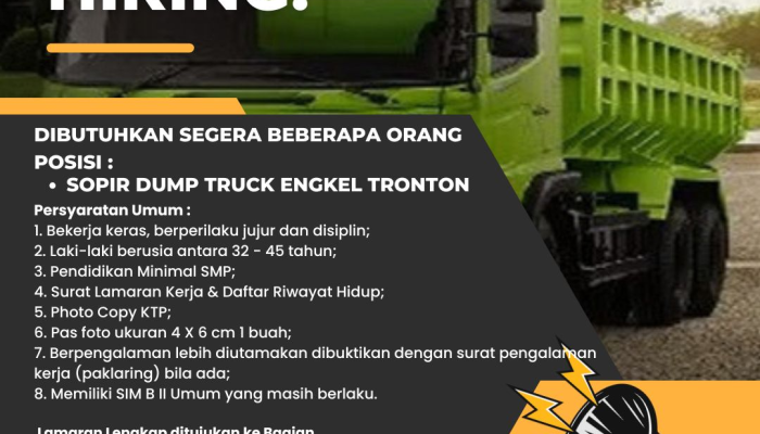 Posisi: Sopir Dump Truck Engkel Tronton