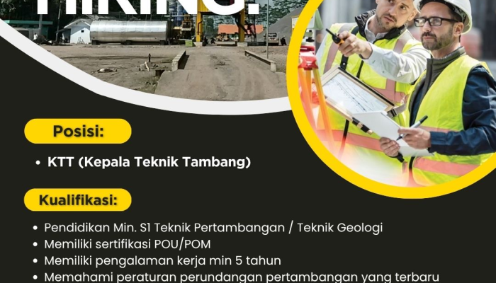 - Pendidikan minimal S1 Teknik Pertambangan atau Teknik Geologi