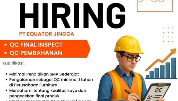 Apakah Anda seorang profesional di bidang pengawasan kualitas dengan ketelitian tinggi? PT Equator Jingga, perusahaan yang bergerak di industri furniture, sedang membuka kesempatan karir bagi Anda untuk mengisi posisi strategis sebagai QC Final Inspect dan QC Pembahanan.