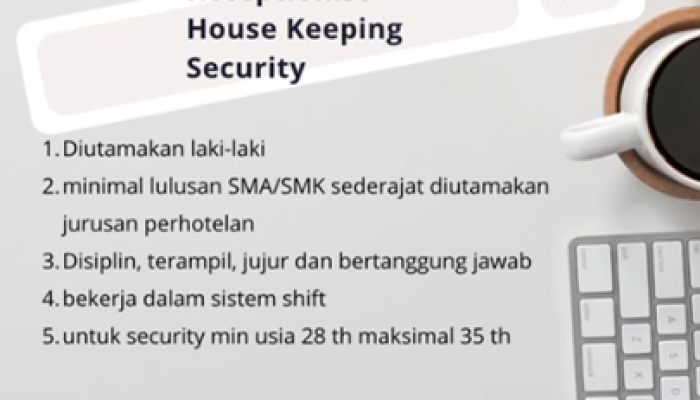 Apakah Anda seorang yang disiplin, jujur, terampil, dan siap bekerja dalam sistem shift di lingkungan perhotelan? Jika Anda memiliki latar belakang SMA/SMK, terutama dari jurusan perhotelan, ini adalah waktu yang tepat untuk memulai karir Anda.