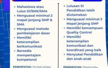 - Pendidikan: Minimal SMA/K – D1 semua jurusan.