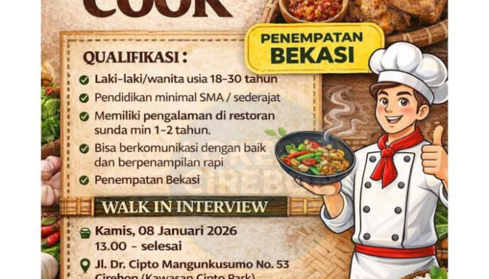 - Pengalaman: Memiliki pengalaman bekerja di restoran Sunda minimal 1-2 tahun.