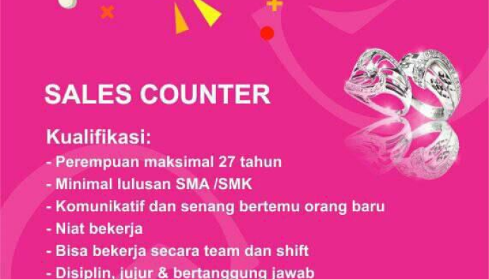 Apakah Anda seorang wanita muda yang komunikatif, penuh semangat, dan sedang mencari tantangan baru di dunia retail perhiasan? Gallery Silver, brand perhiasan perak terkemuka, sedang membuka kesempatan karier bagi Anda untuk mengisi posisi sebagai Sales Counter.