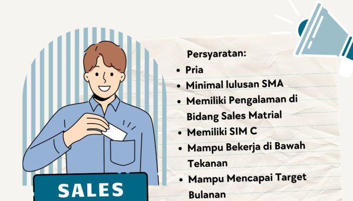 - Pengalaman: Memiliki pengalaman kerja di bidang Sales Material.