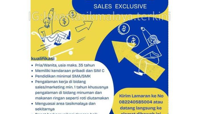 Bagi Anda yang berminat melamar loker Sales Tasikmalaya ini, silakan: