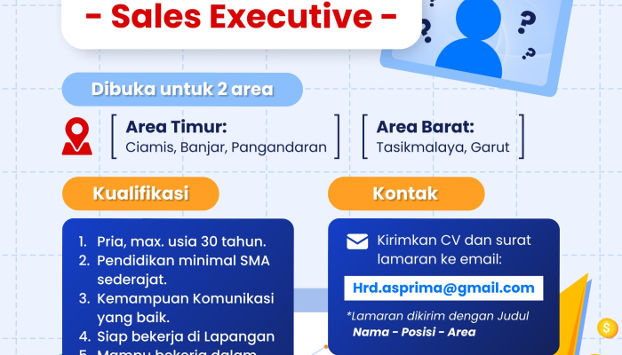 Lokasi Penempatan Kerja: Jawa Barat (Tasikmalaya, Garut, Ciamis, Banjar, Pangandaran). Deadline Lamaran: Segera kirimkan sebelum kuota terpenuhi.