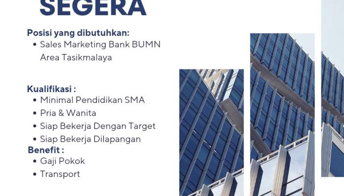 PT. Anugerah Rekanan Bersama (ARB), mitra resmi untuk rekrutmen di lingkungan Bank BUMN dan Bank BTN, membuka kesempatan emas bagi Anda untuk bergabung sebagai Sales Marketing atau Sales Executive di wilayah Tasikmalaya. Kami mencari talenta terbaik, minimal lulusan SMA/SMK, yang siap bekerja keras di lapangan. Dapatkan Gaji Pokok, Tunjangan Transport, BPJS Ketenagakerjaan, dan Jenjang Karir yang jelas!