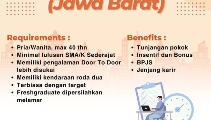 Bagi Anda yang memenuhi kualifikasi di atas dan siap mengambil tantangan sebagai Sales Lapangan di Jawa Barat, silakan segera kirimkan lamaran Anda.
