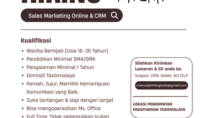 • Domisili: Diutamakan berdomisili di Tasikmalaya.