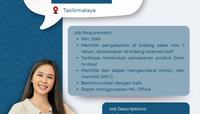 Apakah Anda seorang pejuang lapangan yang mahir berkomunikasi dan berpengalaman dalam dunia penjualan? Megavision, salah satu provider internet ternama, bekerja sama dengan JMAX Indonesia, saat ini sedang membuka kesempatan karir bagi Anda untuk bergabung sebagai Sales untuk wilayah operasional di Tasikmalaya.