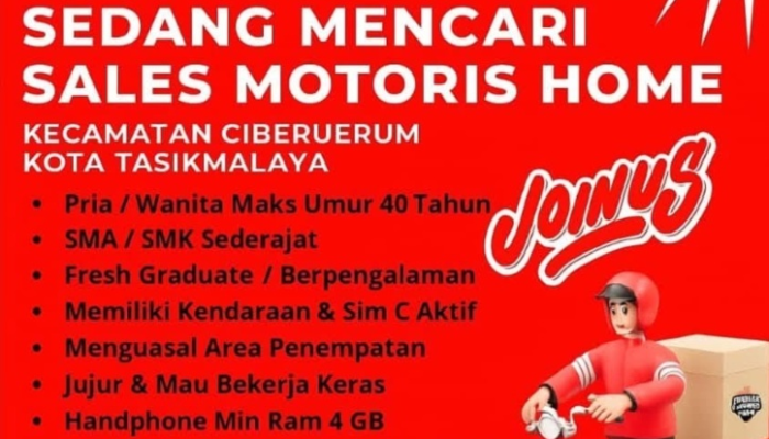 Apakah Anda seorang yang dinamis, memiliki etos kerja tinggi, dan sedang mencari peluang karir dengan penghasilan menarik di bidang penjualan? PT Khalilah Sukses Niaga (Mayora United Home) saat ini sedang membuka kesempatan emas bagi Anda untuk bergabung sebagai Sales Motoris Home. Penempatan khusus untuk area Kecamatan Ciberuerum, Kota Tasikmalaya.