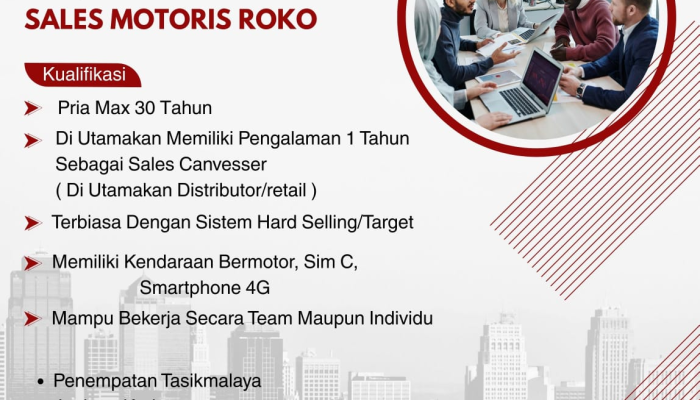 - Format Pesan: Sebutkan nama lengkap dan posisi yang dilamar (Sales Motoris Roko – Tasikmalaya).
