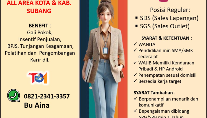 - Penempatan: Bersedia ditempatkan sesuai domisili (All Area Kota & Kabupaten Jawa Barat, termasuk Subang).