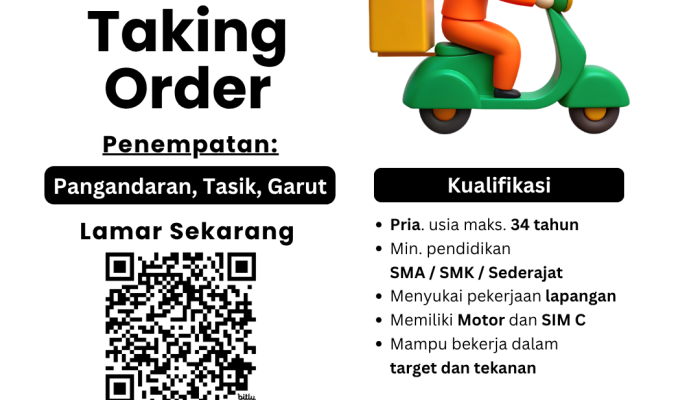 Apakah Anda seorang pribadi yang dinamis, menyukai tantangan lapangan, dan berorientasi pada target? Inilah saatnya bagi Anda untuk mengembangkan karir di salah satu grup perusahaan terkemuka di Indonesia, Orang Tua Group (OT Group), melalui anak perusahaannya, PT Adi Makmur Sentosa. Kami membuka peluang karir sebagai Sales Taking Order untuk penempatan di wilayah strategis Pangandaran, Tasikmalaya, dan Garut. Jika Anda memiliki semangat tinggi dan ingin mendapatkan penghasilan yang kompetitif (UMK + 1 Juta + Insentif!), jangan lewatkan kesempatan lowongan kerja Sales Taking Order ini. Baca informasi selengkapnya dan siapkan diri Anda untuk melamar sekarang!
