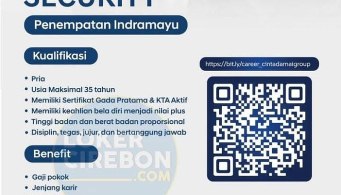 Apakah Anda seorang profesional di bidang keamanan yang berdedikasi dan memiliki sertifikasi resmi? Cinta Damai Group, perusahaan terkemuka yang menaungi berbagai brand otomotif besar, sedang membuka kesempatan karir bagi Anda untuk bergabung sebagai Security. Kami mencari personel keamanan yang tangguh, disiplin, dan bertanggung jawab untuk menjaga lingkungan kerja kami di wilayah Indramayu.