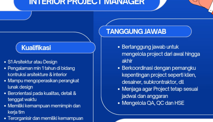 Bergabunglah bersama Seven Interior dan jadilah bagian dari proyek-proyek inspiratif yang mengubah ruang menjadi karya seni. Simak kualifikasi lengkap untuk masing-masing posisi di bawah ini.