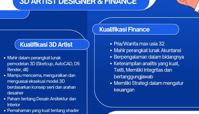 - Mahir dalam perangkat lunak pemodelan 3D (seperti Sketchup, AutoCAD, D5 Render, dll.).