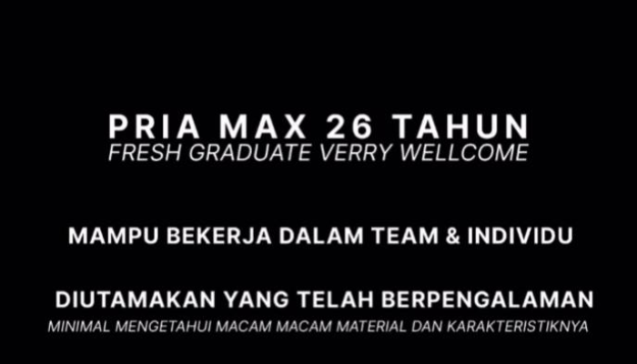 - Pendidikan: Terbuka untuk Fresh Graduate.