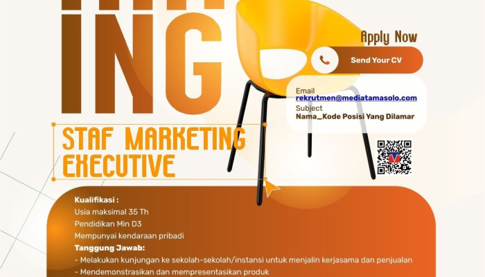 Apakah Anda seorang komunikator handal yang berdomisili di Tasikmalaya dan ingin berkarir di industri literasi? Penerbit dan Percetakan Mediatama kini hadir dan membuka kesempatan emas bagi talenta lokal untuk bergabung sebagai Staf Marketing Executive. Jika Anda adalah pribadi yang dinamis, menyukai tantangan lapangan, dan ingin berkontribusi bagi dunia pendidikan, inilah saatnya Anda bersinar!