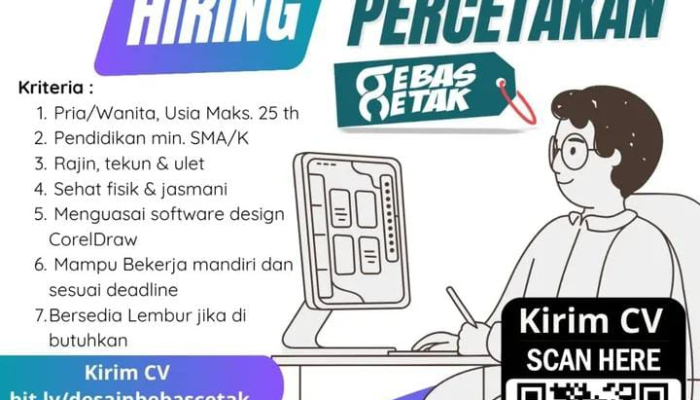 Apakah Anda seorang yang rajin, tekun, dan ulet? Punya passion di dunia desain grafis dan percetakan? Jika Anda menguasai CorelDraw dan siap bekerja mandiri serta on-time sesuai deadline, inilah kesempatan emas untuk Anda!