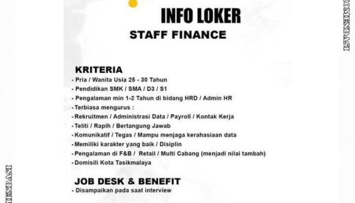 Lowongan Kerja Staff Finance Golden Street Food Tasikmalaya Terbaru 2025